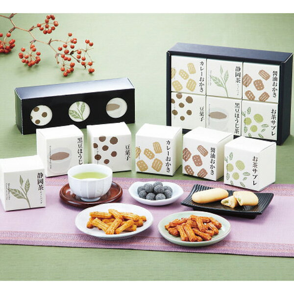 商品名:キューブセレクション【和の緑茶詰合せ】型 番:CSY−CE●商品内容:静岡深蒸茶ティーバッグ(2.5g×7)、黒豆ほうじ茶ティーバッグ(2.5g×7)、たまり醤油おかき24g、カレーおかき24g、豆菓子(黒ごま味)45g、お茶サブレ×3●箱サイズ:化粧箱入:幅25×奥行18×高さ7cm●重量:約 544g●原産国:日本●賞味期限:常温 製造日より300日※メーカー都合により、パッケージデザイン・内容等が変更になる場合がございます。