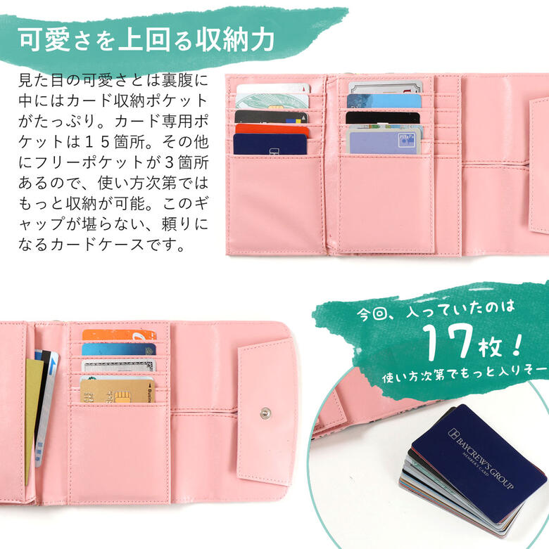 商品名 花柄 コンパクト カードケース サイズ ONESIZE カラー ホワイト,ピンク,ブラック 素材 合成皮革 仕様 カードポケットx15 フリーポケットx4 背面ポケットx1 小銭入れx1 商品説明 見た目の可愛さとは裏腹に中にはカード収納ポケットがたっぷり。