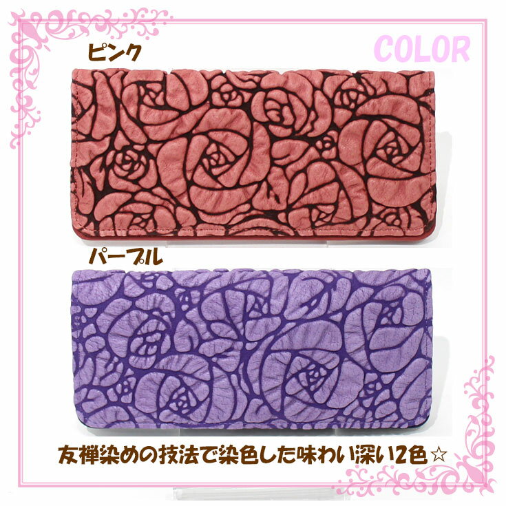 【送料無料】収縮バラ柄 かぶせ長財布 本革 軽量 花びら バラ 薔薇