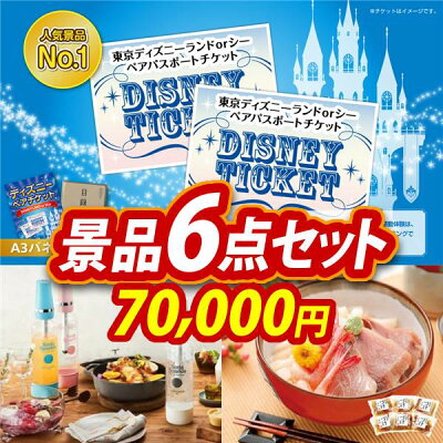 二次会 景品6点セット《ディズニーチケット ペア1DAYパスポート ブルーレイディスクプレーヤー 他》 イベント 二次会 忘年会 あす楽 特大パネル 目録 ペアチケット Disney ディズニーシー テーマパーク