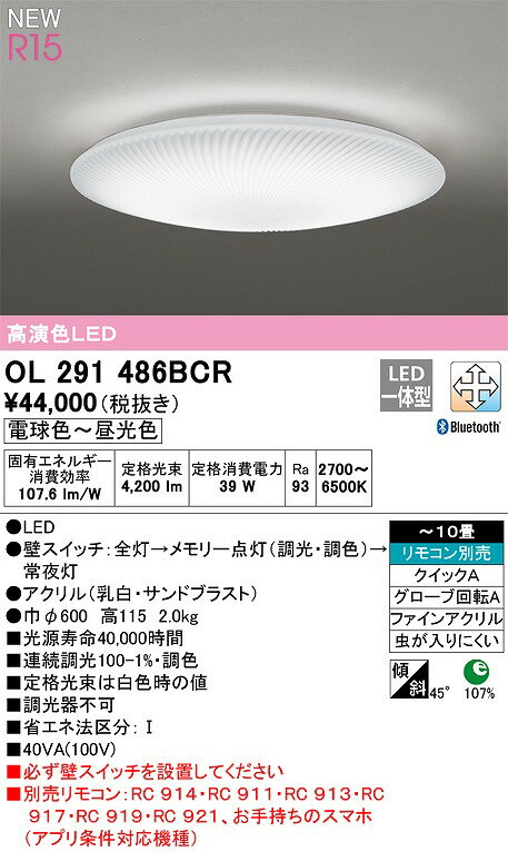 カテゴリ:照明器具 シーリングライト メーカー:オーデリック ODELIC 型番:ol291486bcr ◎照明関連 【おすすめ Fケーブル】 (※適合に関しては事前にご確認ください) VVF1.6x2C VVF2.0x2C VVF1.6x3C VVF2.0x3C
